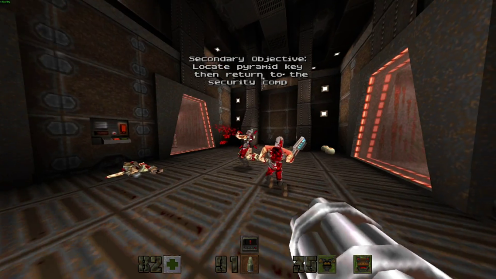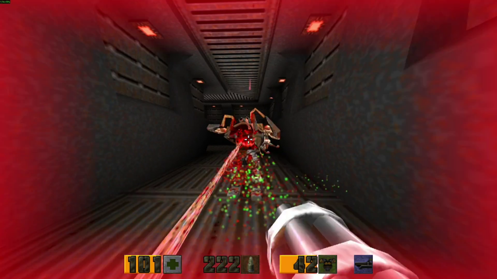 Once again, I might just be bad, and I was talking while playing which really tends to split my focus and lead to me playing worse. I have heard people say Quake 2 practically plays itself and in watching my gameplay I definitely completely missed some extremely obvious things that lead to me getting stuck for much longer than I could’ve. But there were just as many moments where it seems like the repetitive hallways and rooms full of generic computers and elevators tripped me up as well. Maybe Quake 2’s level design is brilliant and perfect and I’m just an idiot. But then why did Nightdive feel the need to add the compass? I can’t have been the only idiot who got lost in this game.