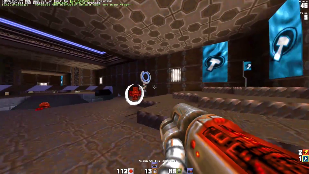 However, there is a place where I think the inventory system makes things interesting and maybe even better, and that’s in multiplayer. In Quake 2 multiplayer, items kind of work more Pac-Man-ish but you can also drop items and weapons for other players. This means in modes like CTF, you can have scouts seeking out quad damages for flagrunners, or defense upgrades for guards.