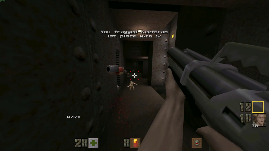 One thing I’m struck by playing Doom and Quake 1 in comparison to this game is how few enemies have guns. Usually the lower tier enemies that go down in one shot from just about anything. Doom in particular makes this a lot of fun. You have to take out the weaker enemies first while dodging the stronger ones because the weaker ones are glass cannons that can do unavoidable and devastating hitscan damage.